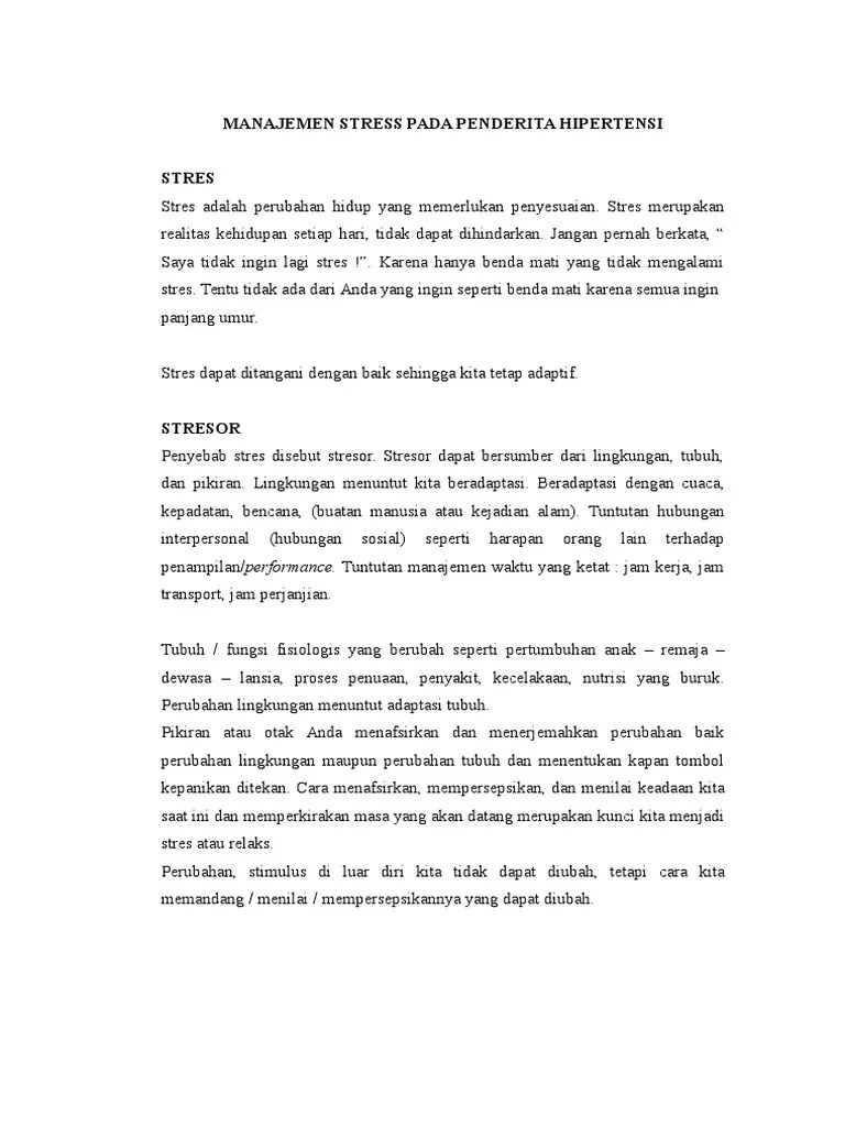 Contoh Lembar Kerja Tentang Management Stress / 2 / The description of job stress on employee medical record bhakti.